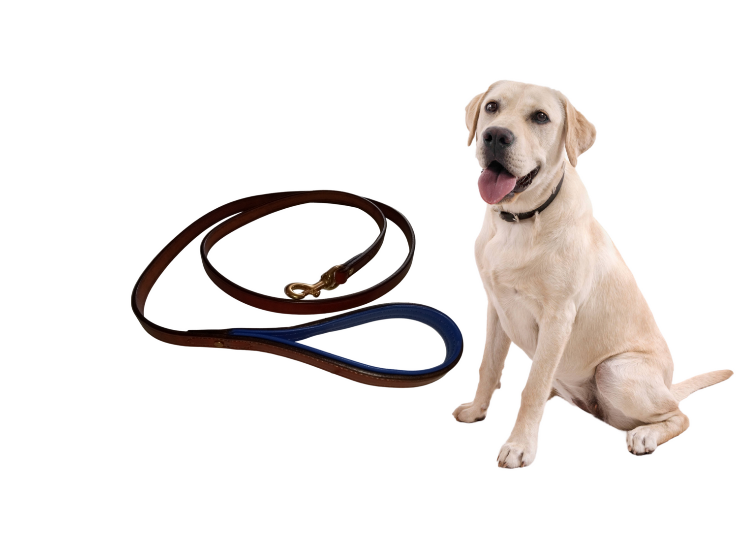 Amish Made Leather Dog Leash - 6 Ft. Length - Padded Handle for Comfort - Domestic Cow Hide and Royal Blue Soft Pebble leather padding.
