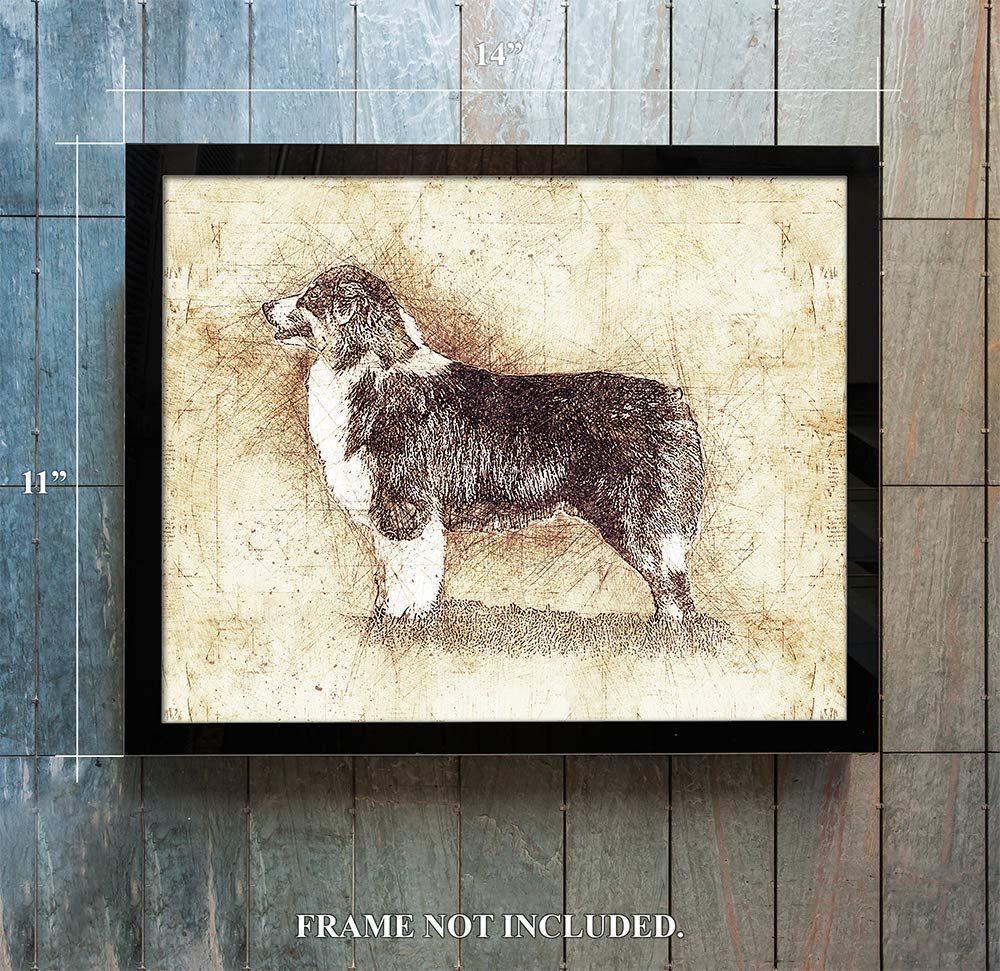 11 x 14" Sketch of an Australian Shepherd - Da Vinci Style - UNFRAMED