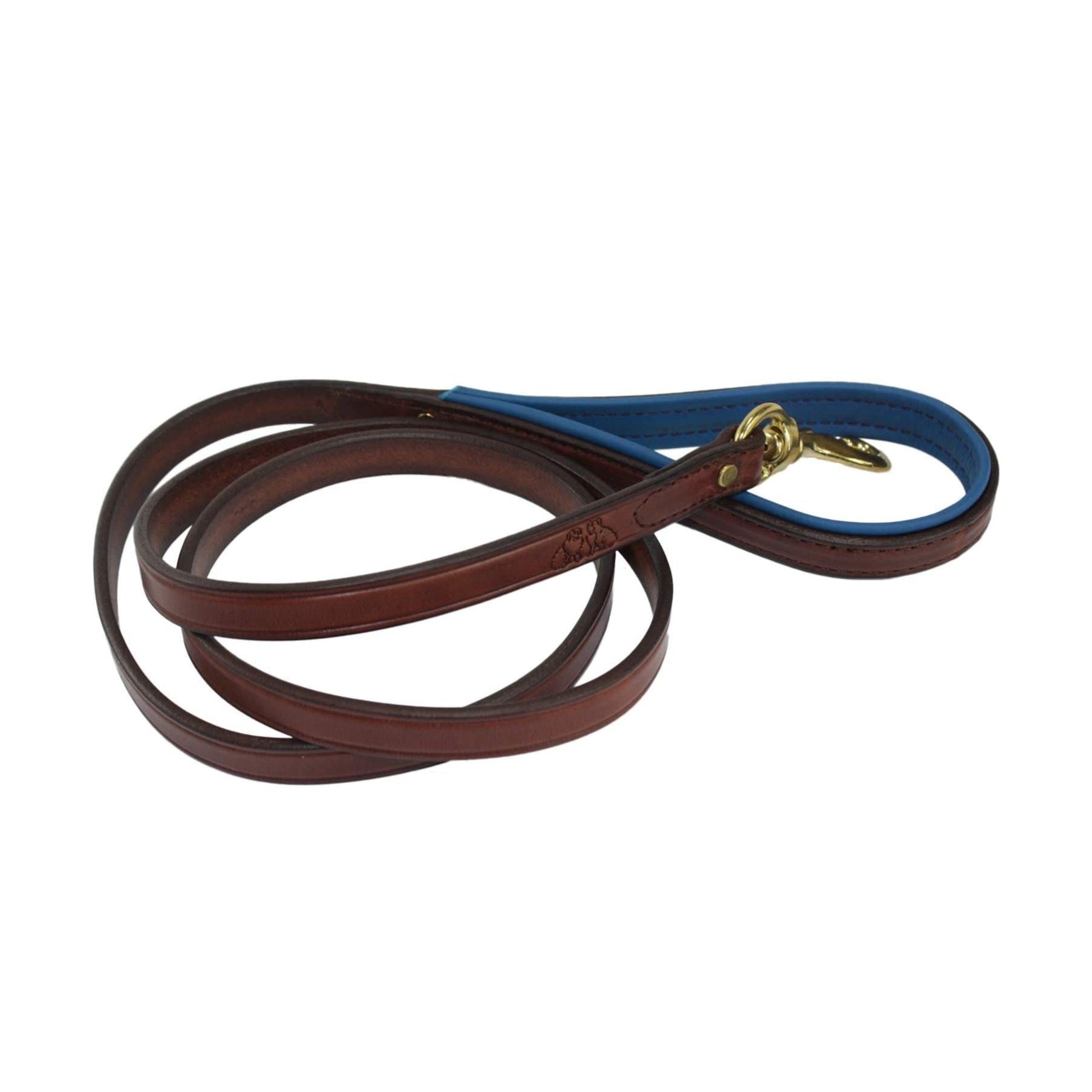 Amish Made Leather Dog Leash - 6 Ft. Length - Padded Handle for Comfort - Domestic Cow Hide and Royal Blue Soft Pebble leather padding.