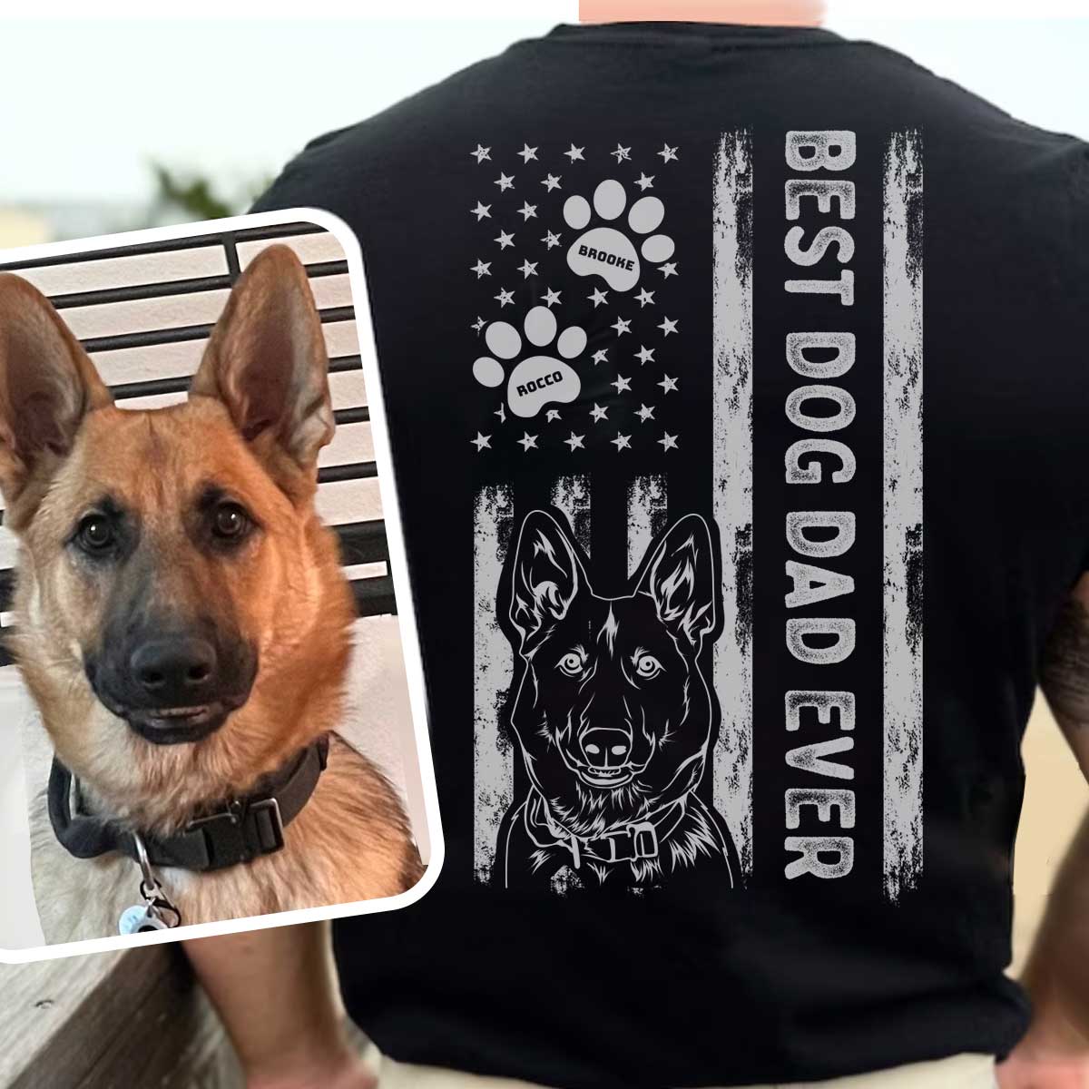 Awesome Personalized Best Dog Dad Ever Shirt - With Custom Drawn Dog Portrait & Names of Dad & Dog