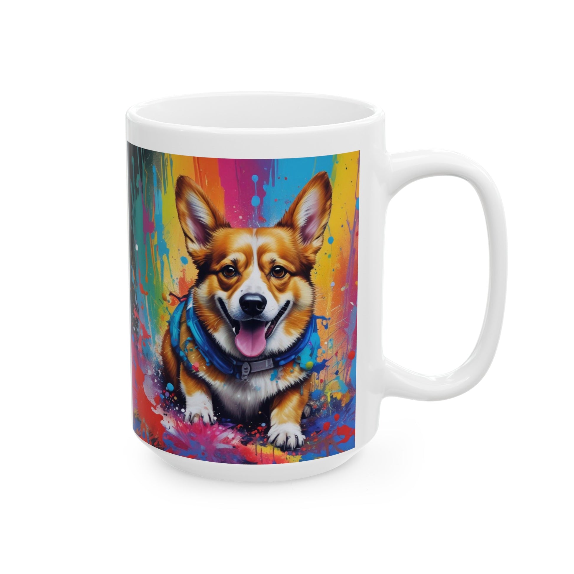 Graffiti Style Corgi Ceramic Mug, (11oz, 15oz)