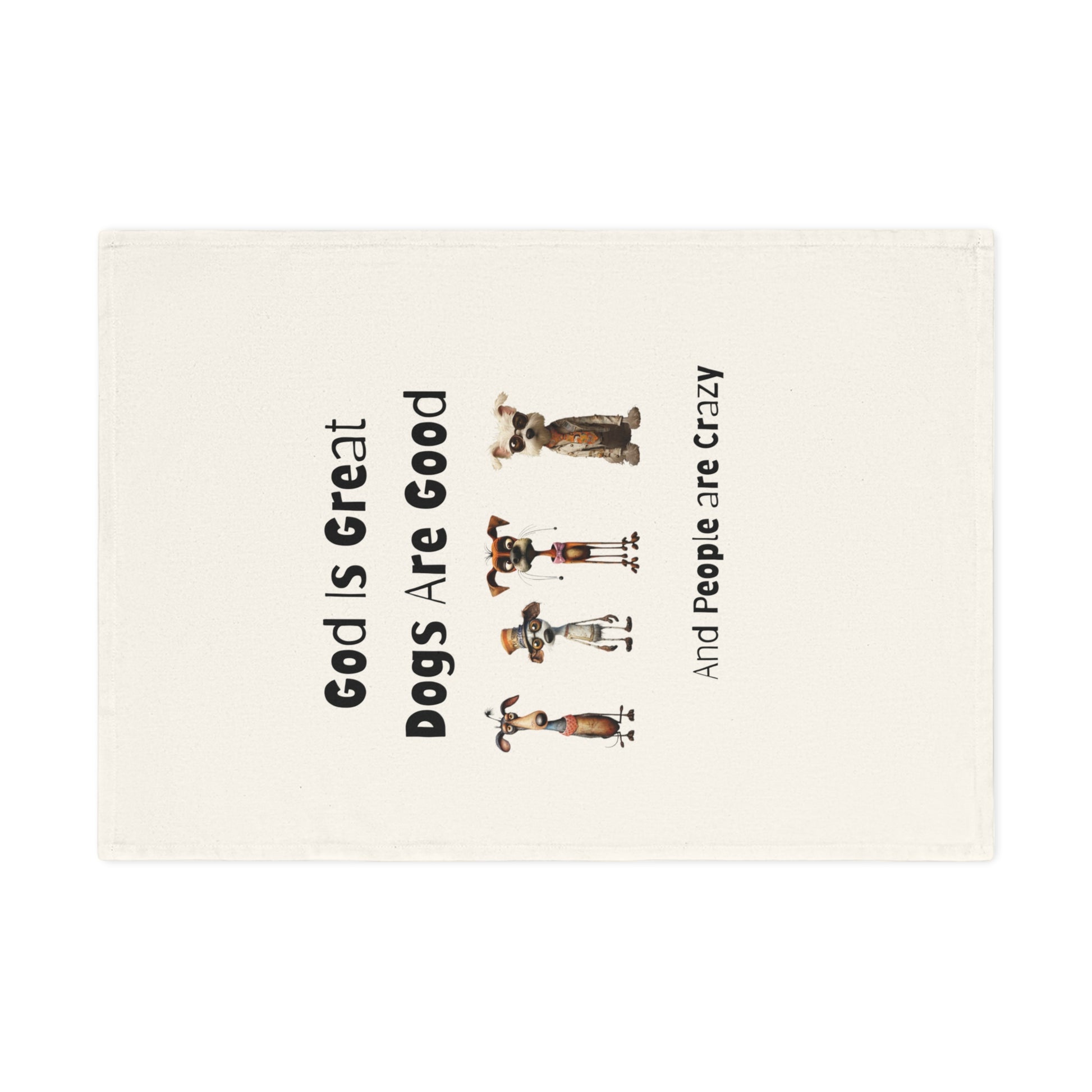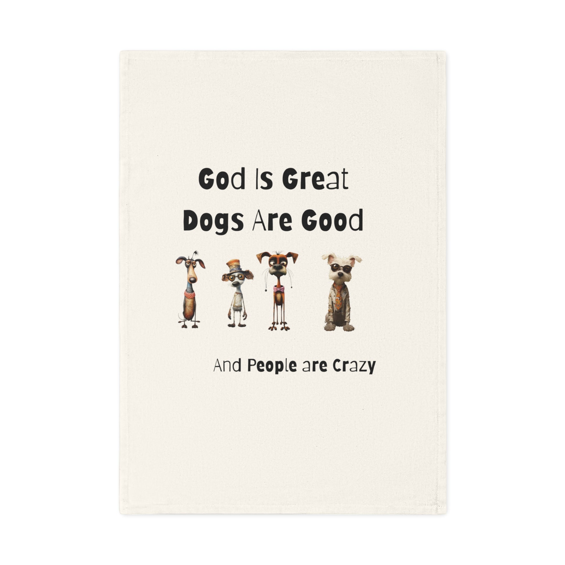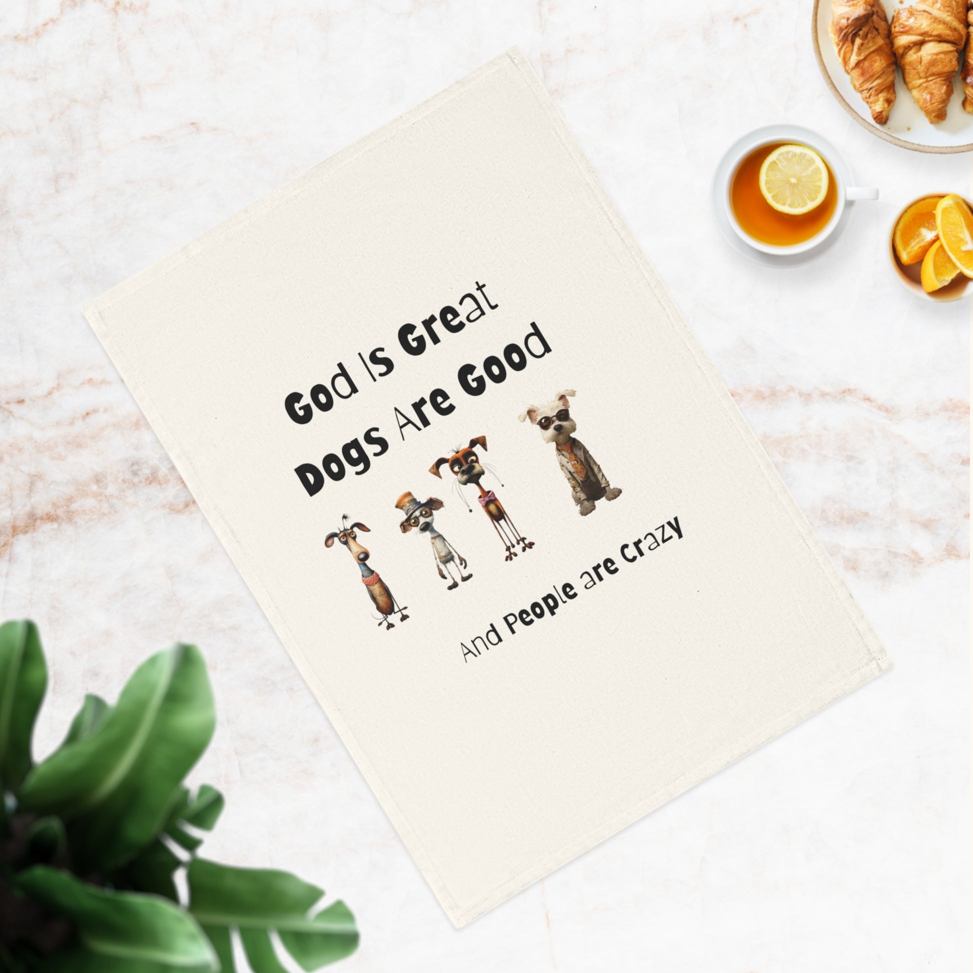 God is Great - Dogs are Good - People are Crazy - Fun Cotton Tea Towel