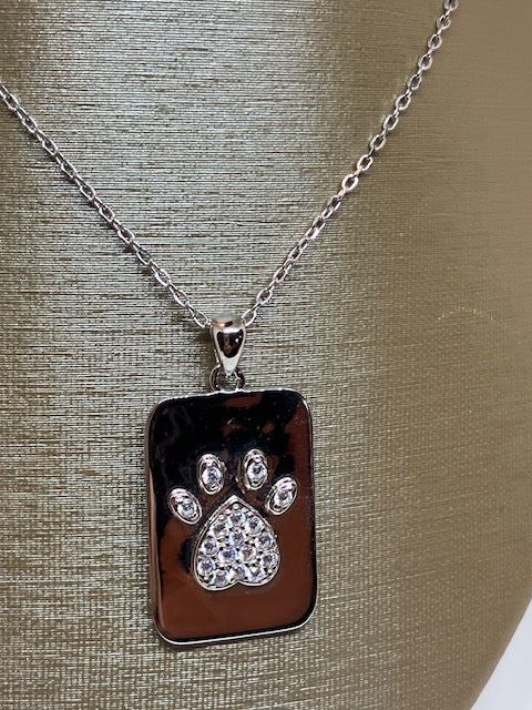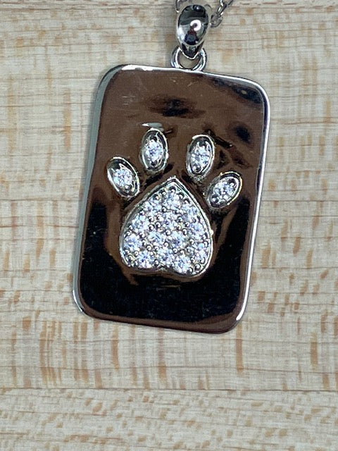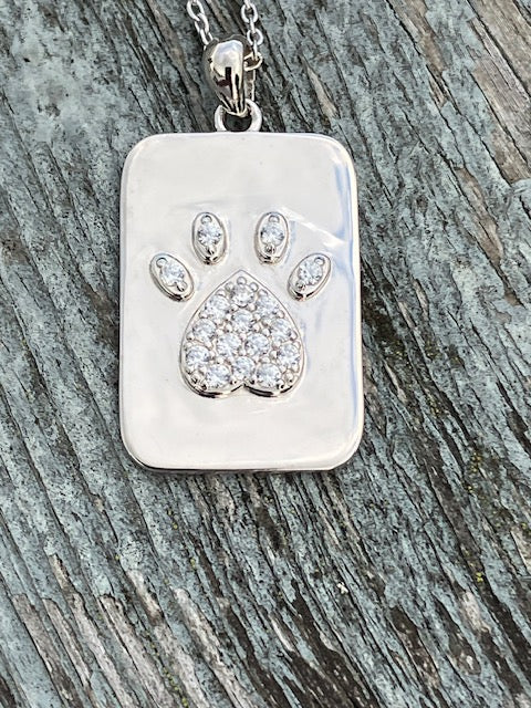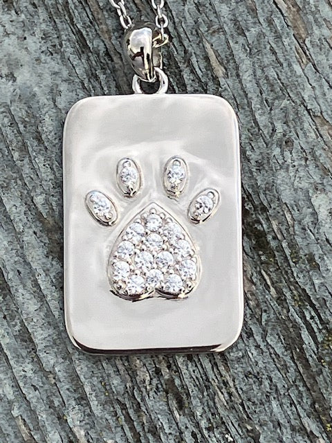 Crystal Paw Print Pendant - Sparkling Sterling Silver Gift for Animal Lovers