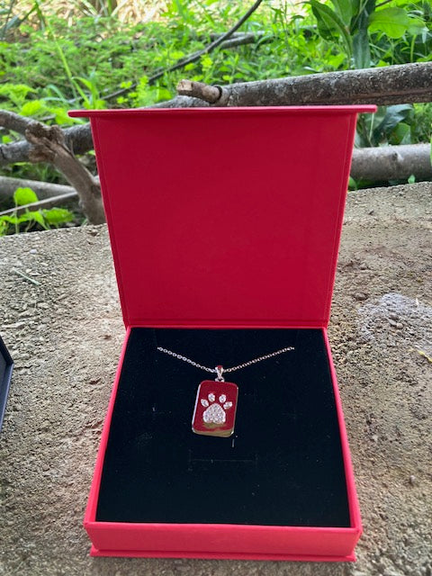 Pets leave their mark on our hearts, and now you can wear that love proudly with our crystal-accented paw-print pendant necklace. This elegant piece features a sterling silver pendant adorned with sparkling crystals, creating a timeless and heartfelt tribute to your beloved pet.