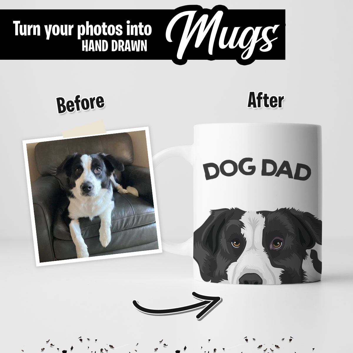 We are professional artists who love creating unique one of a kind mugs. The process is Simple! Upload your photos, leave us a note and let us do the rest!