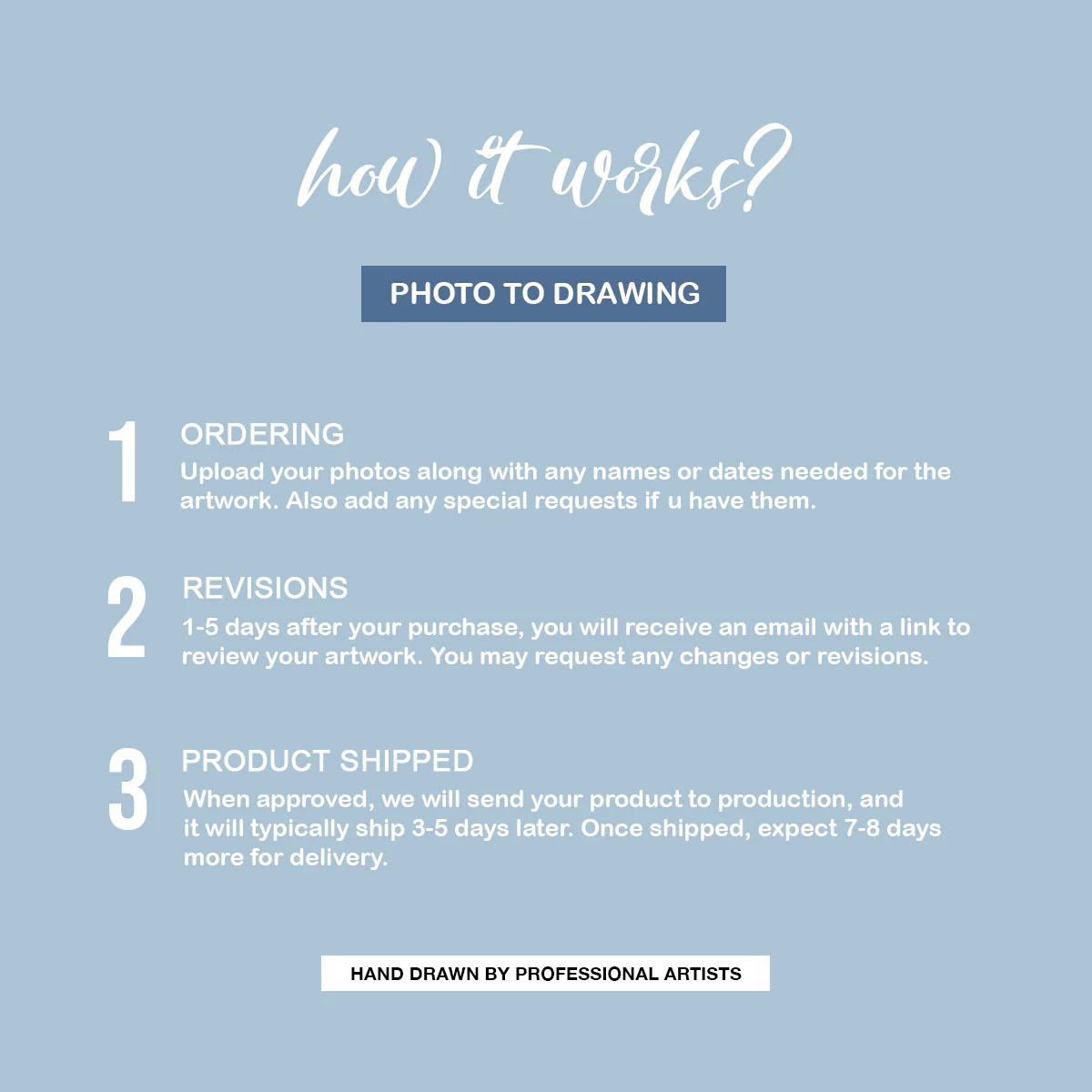 *Photo Requirements: Upload clear non blurry images so our artists can draw most accurate.