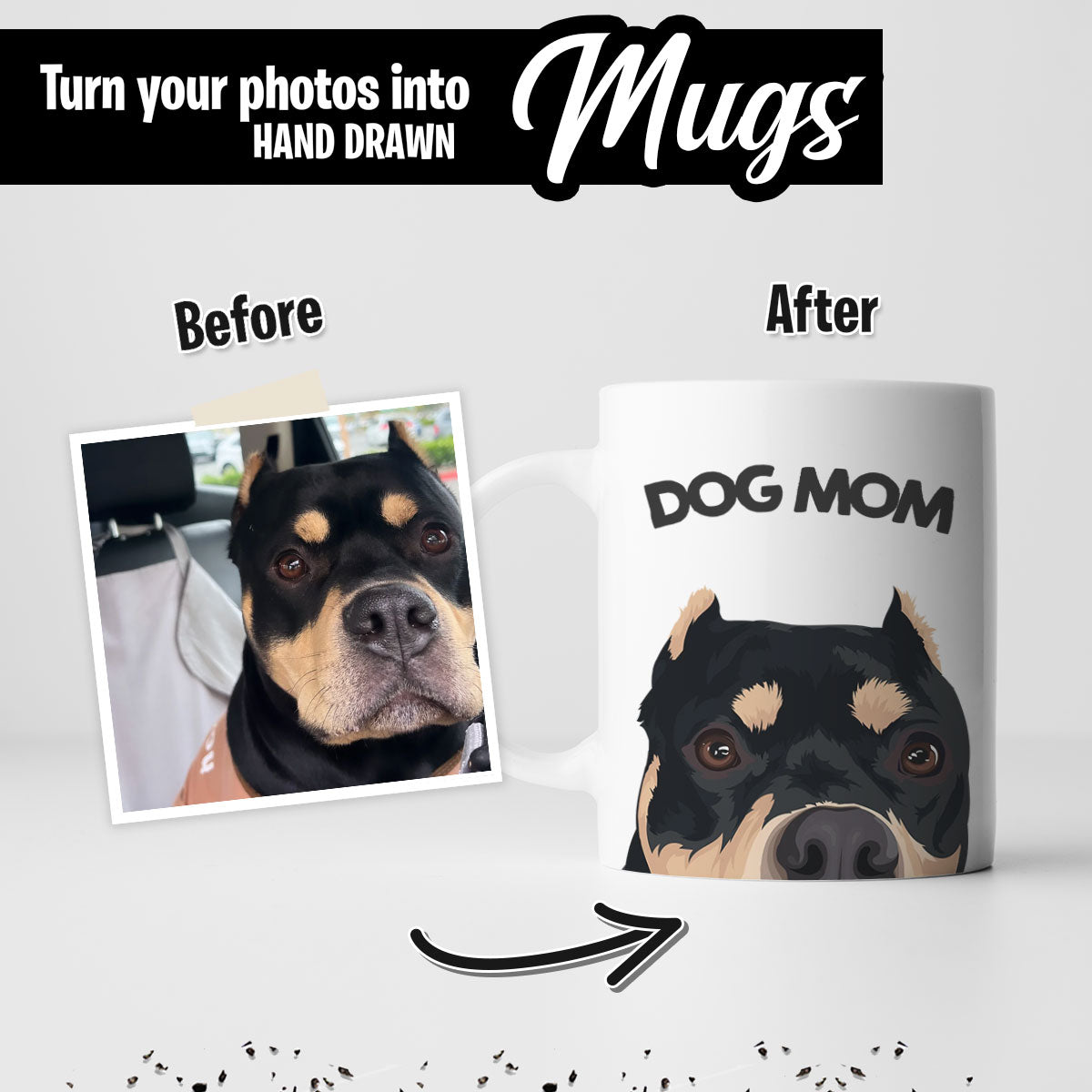We are professional artists who love creating unique one of a kind mugs. The process is Simple! Upload your photos, leave us a note and let us do the rest!