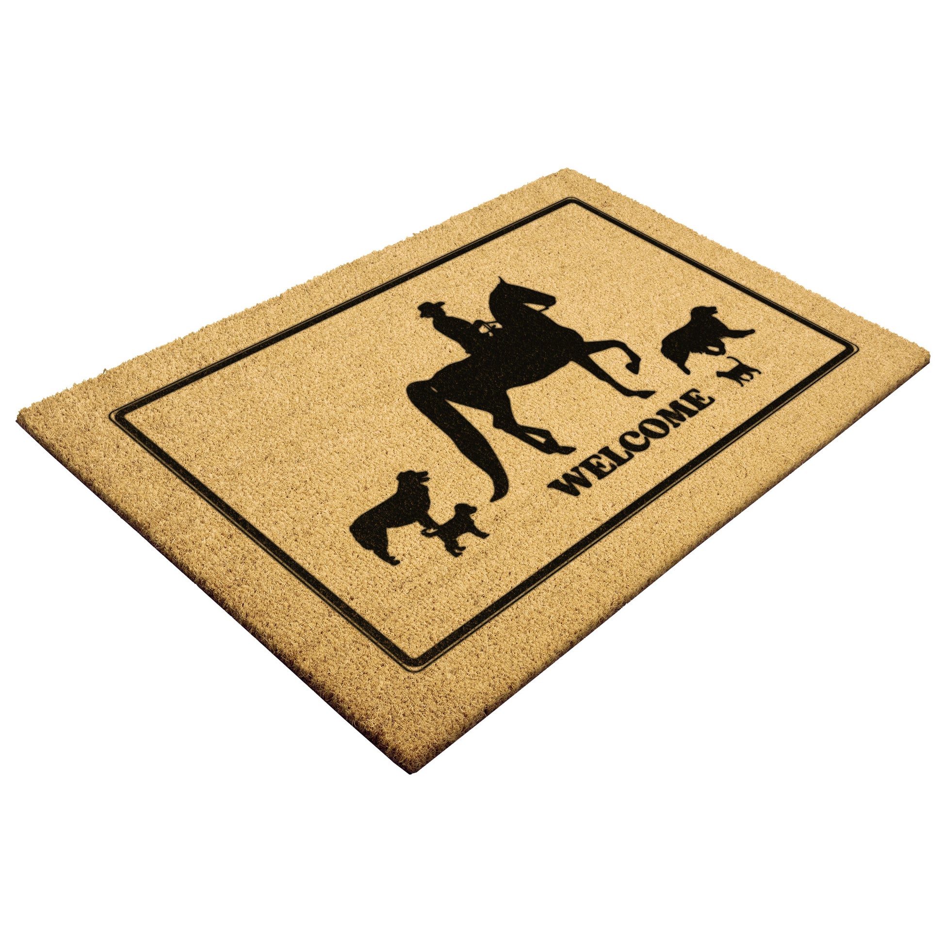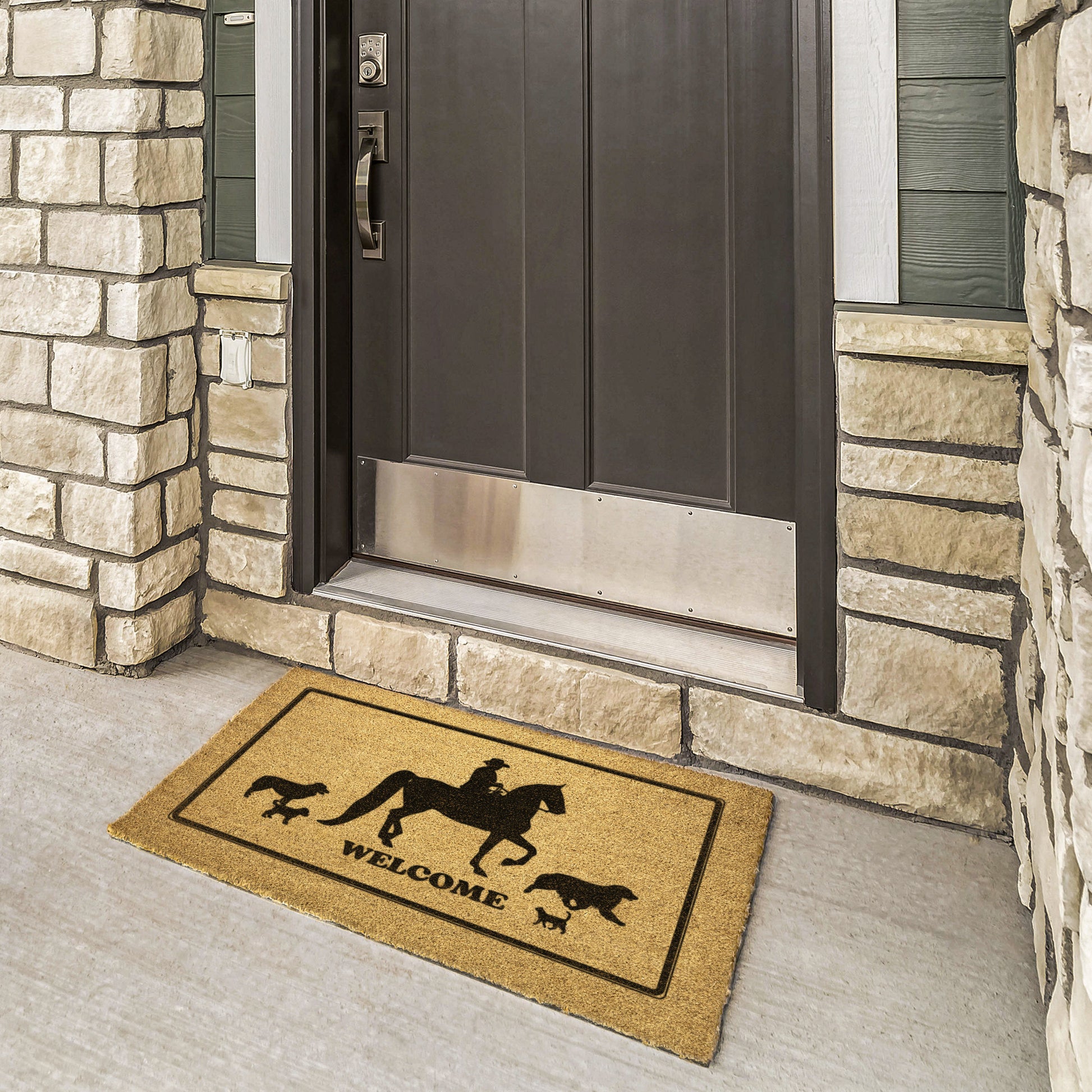 Add an inviting element to your entryway, this durable doormat is perfect for all households. Our coir doormats are made highly durable, easy to maintain material, and professionally stenciled with fade-resistant dyes. The mat fibers easily remove dirt from footwear while retaining colorfast brilliance season after season. Give your home a warm welcome and keep your entryway clean.