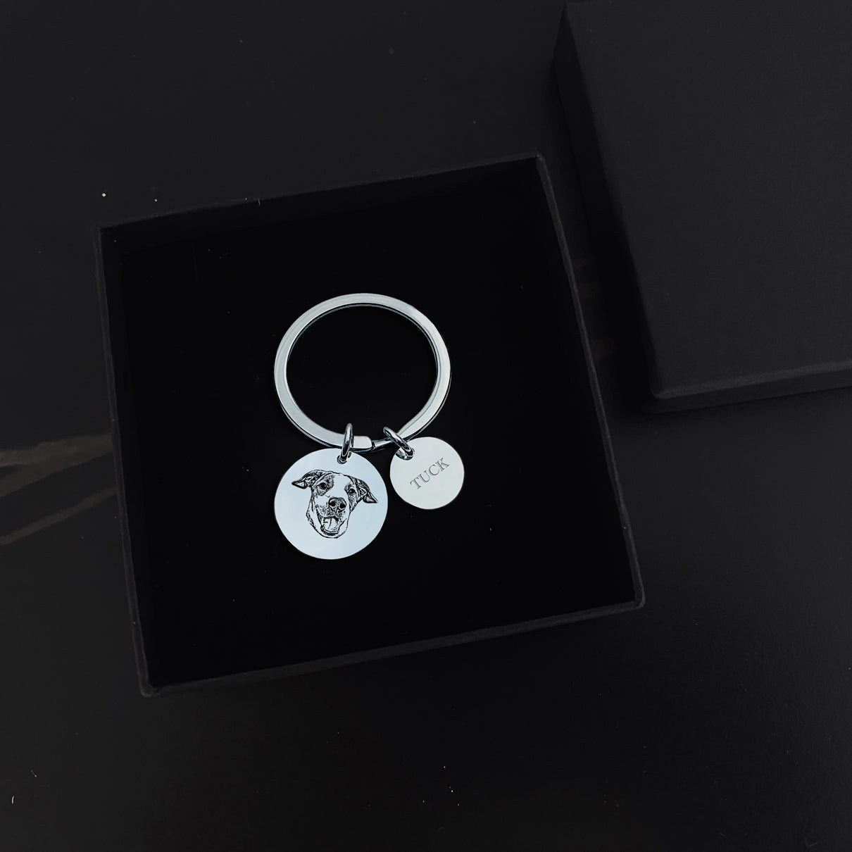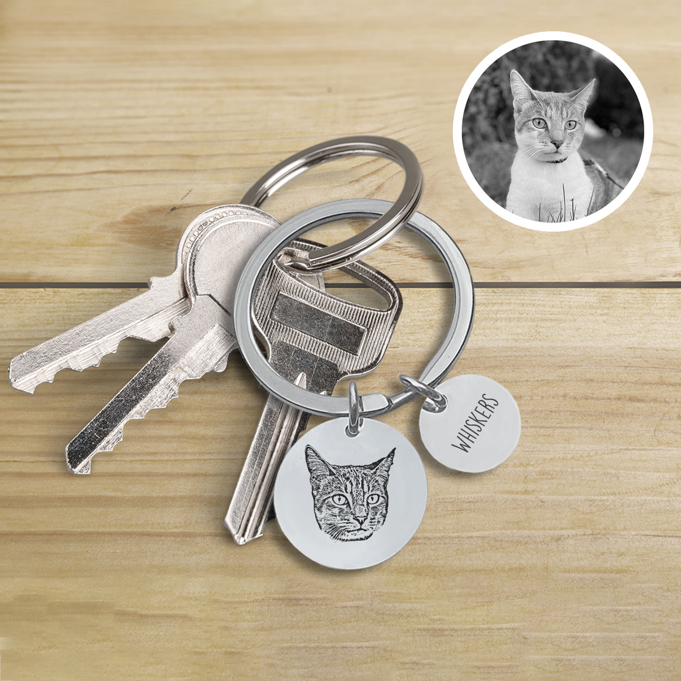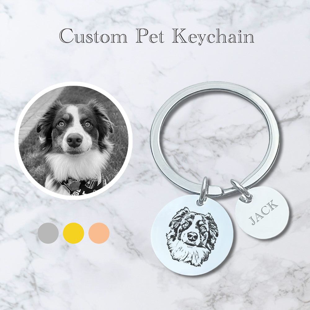 Custom Pet Charm Keychain - Engraved Photo & Name -