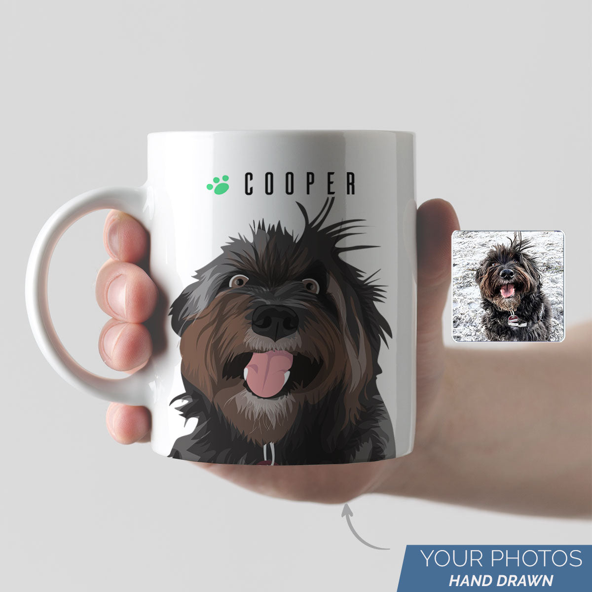 Looking for a truly unique gift for the animal lover in your life? Look no further than our personalized pet portrait mug! This coffee mug is custom made to feature a hand-drawn illustration of your pet, based on a photo you provide. It's the perfect way to show off how much you love your furry friend! This mug makes a great gift for any occasion, and is sure to be cherished for years to come. It's also dishwasher and microwave safe, so it's convenient to use every day. Order yours today and let us help you create a one-of-a-kind gift that will make your loved one smile!