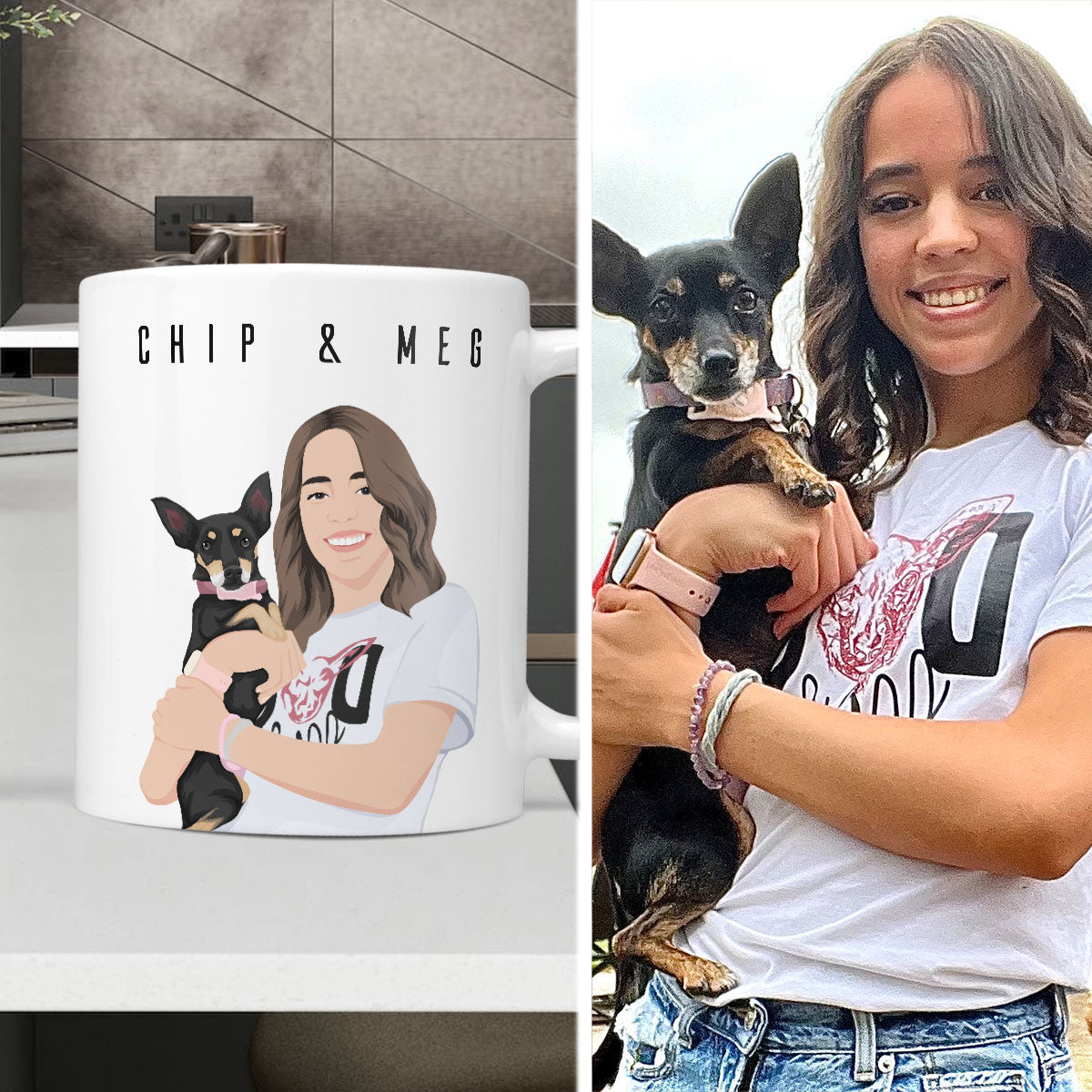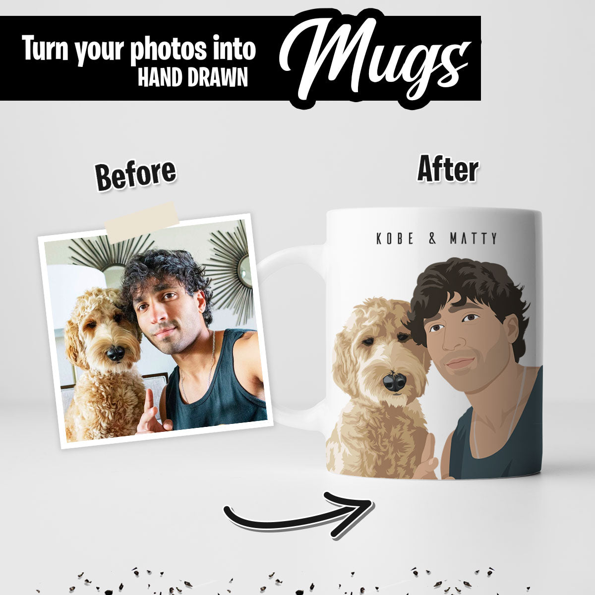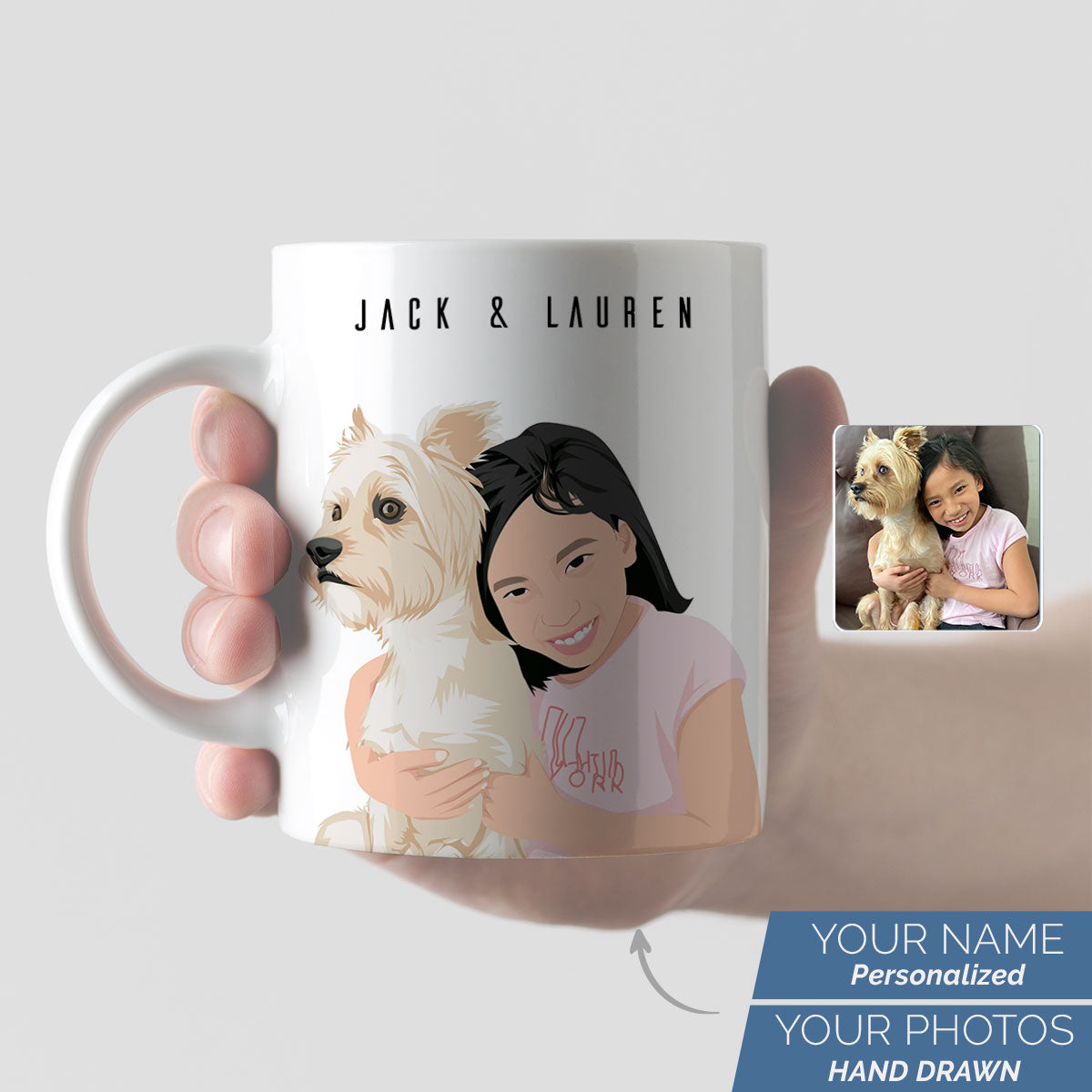 Mugs are not just for coffee anymore! Now you can enjoy your morning beverage in style with a mug that celebrates your furry best friend. Our Personalized Dog and Owner Mug is the perfect way to show off your four-legged friend. Each mug is hand-drawn and uniquely personalized with a photo of you and your dog. So whether you have a rambunctious puppy or a loyal companion, we can capture your special bond in a one-of-a-kind piece of art. And because we personalize each mug individually, no two are exactly alike - just like you and your furry friend!