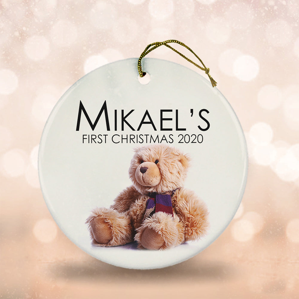 - A personalized Christmas ornament is a perfect keepsake for years to come! Your personalized design is permanently printed, in rich vibrant colors, on a flat round ceramic ornament which approximately measures 2.85β- 3".