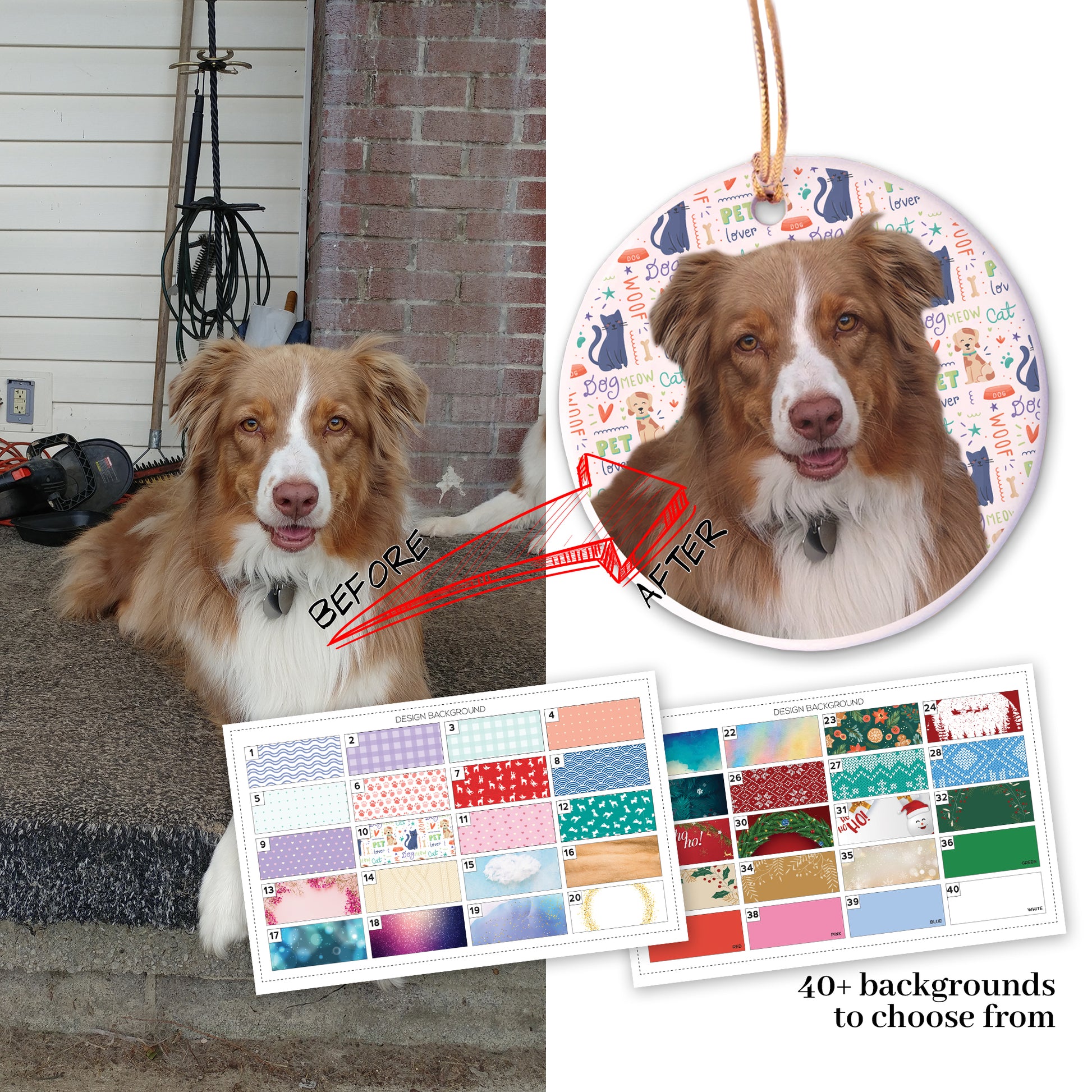 Customizable, Personalized Photo Pet Ornament. Round Square or Oval Shape available. Makes a unique gift for any pet lover.