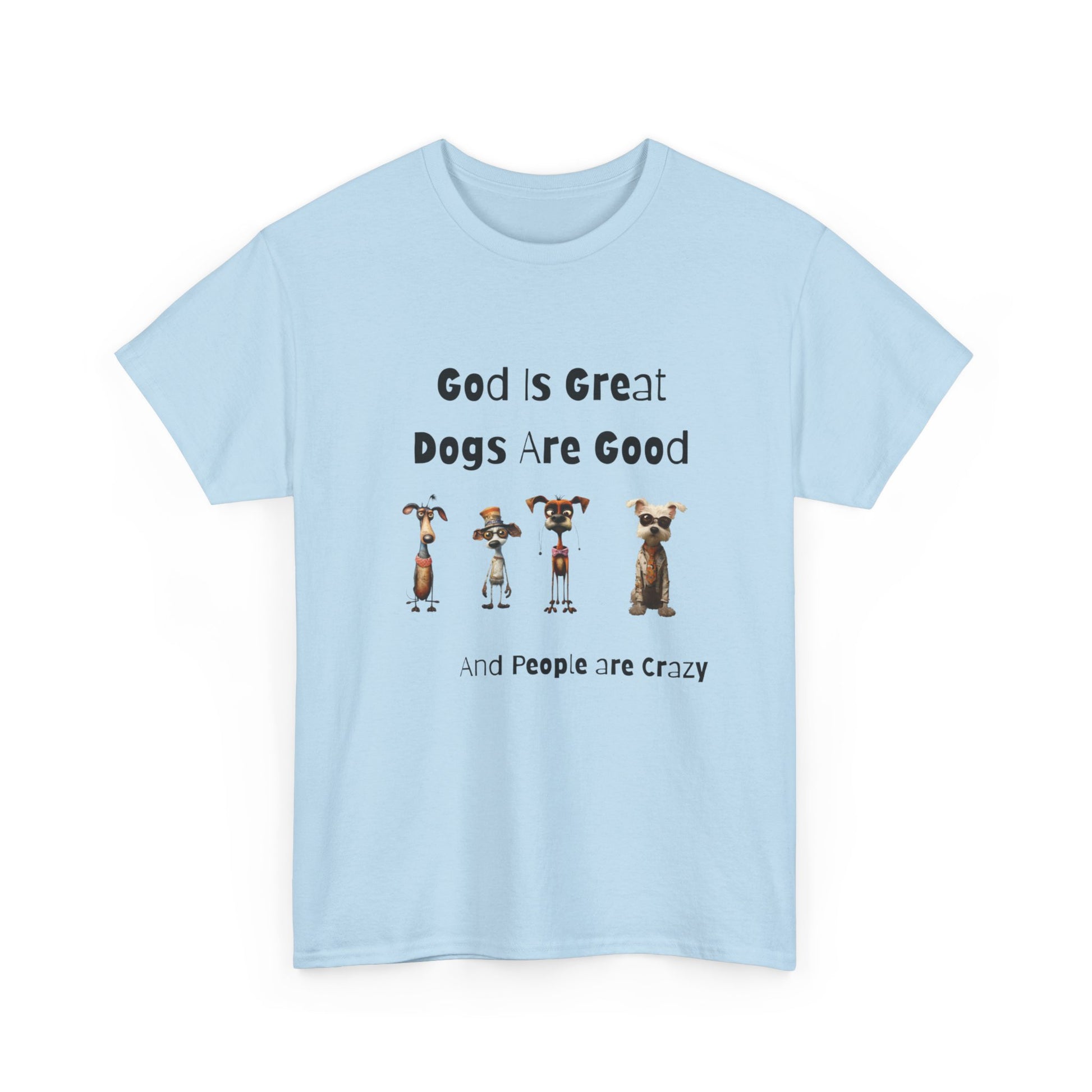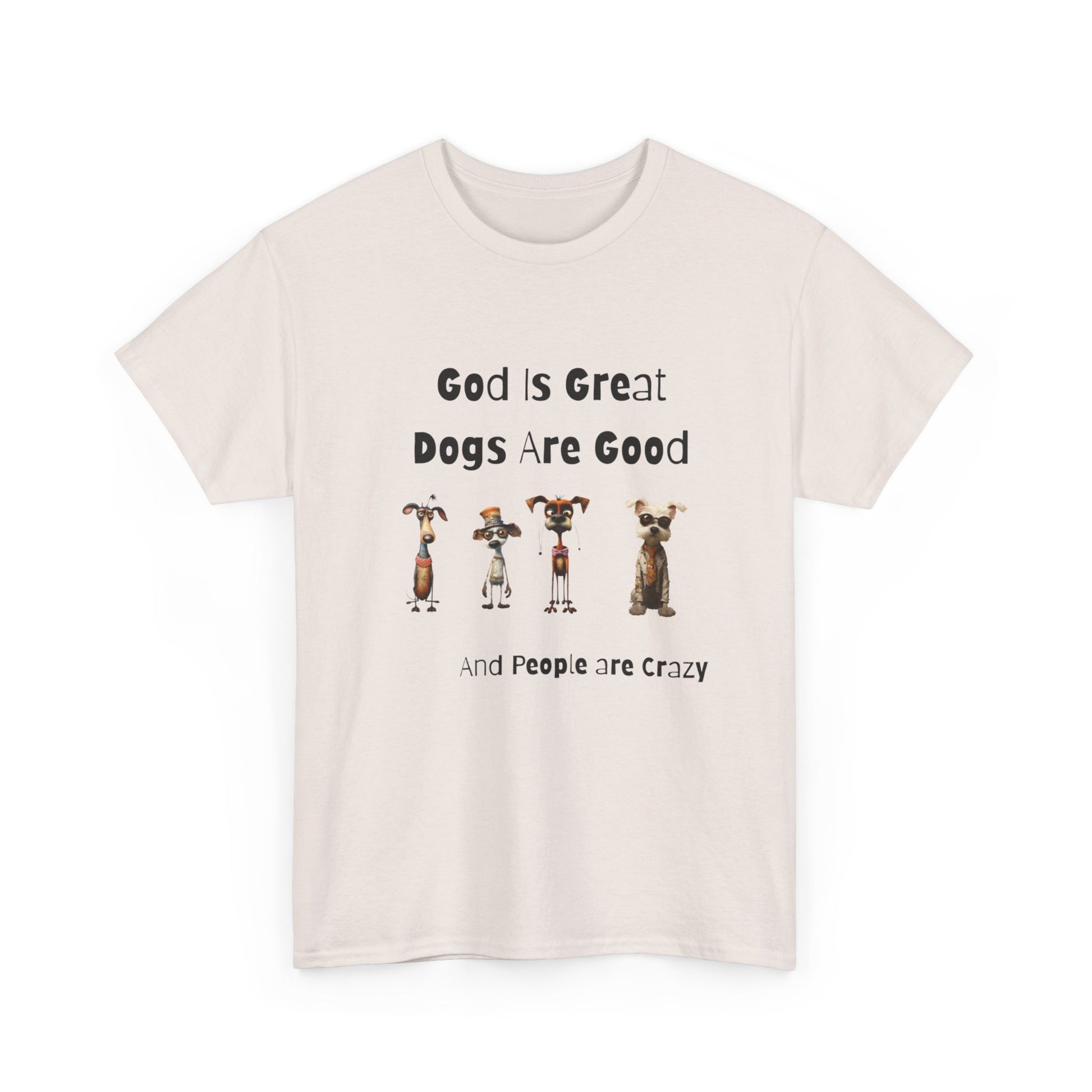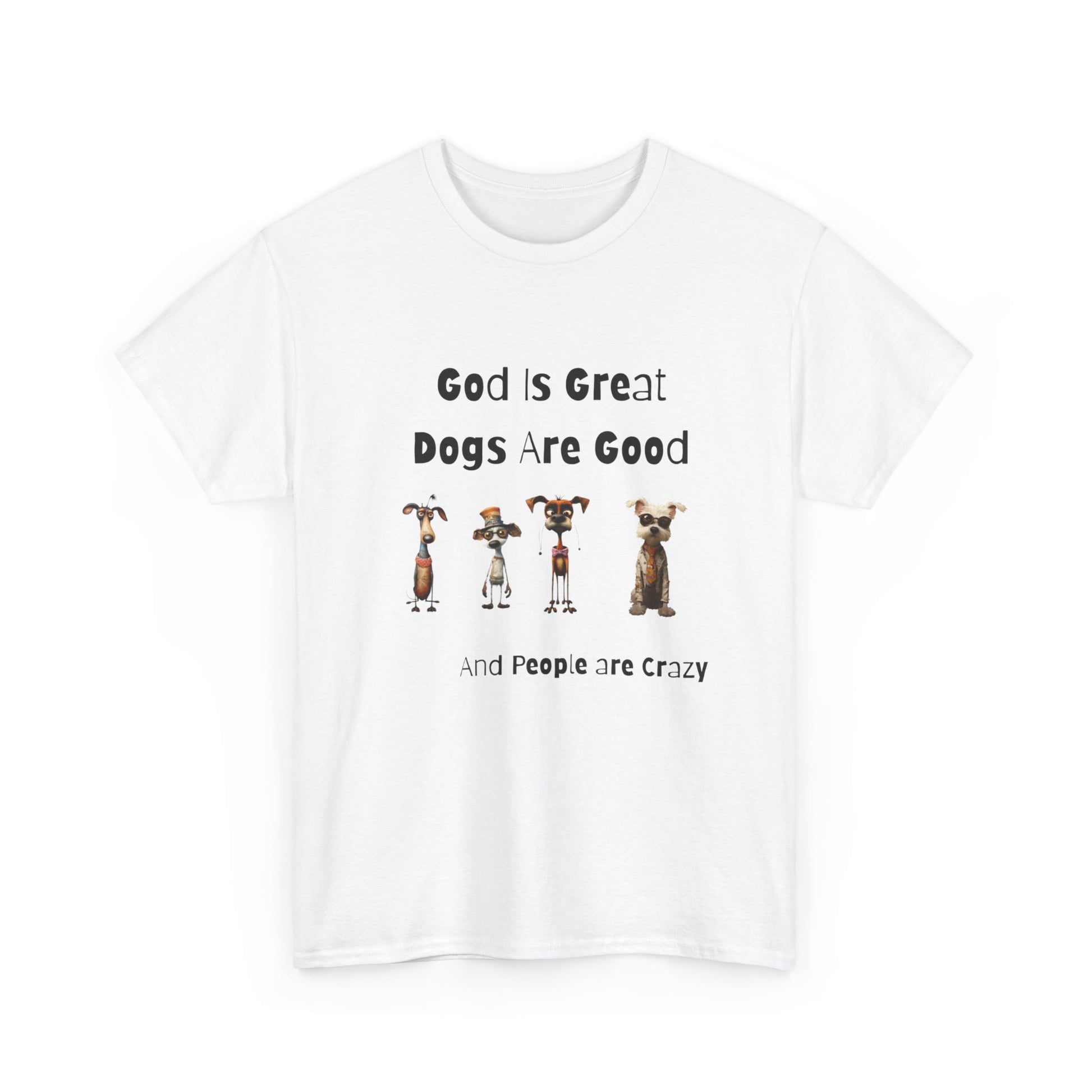 God is Great, Dogs are Good and People are Crazy - Funny Cartoon Style T-shirt for Dog Lovers - Great Gift Idea