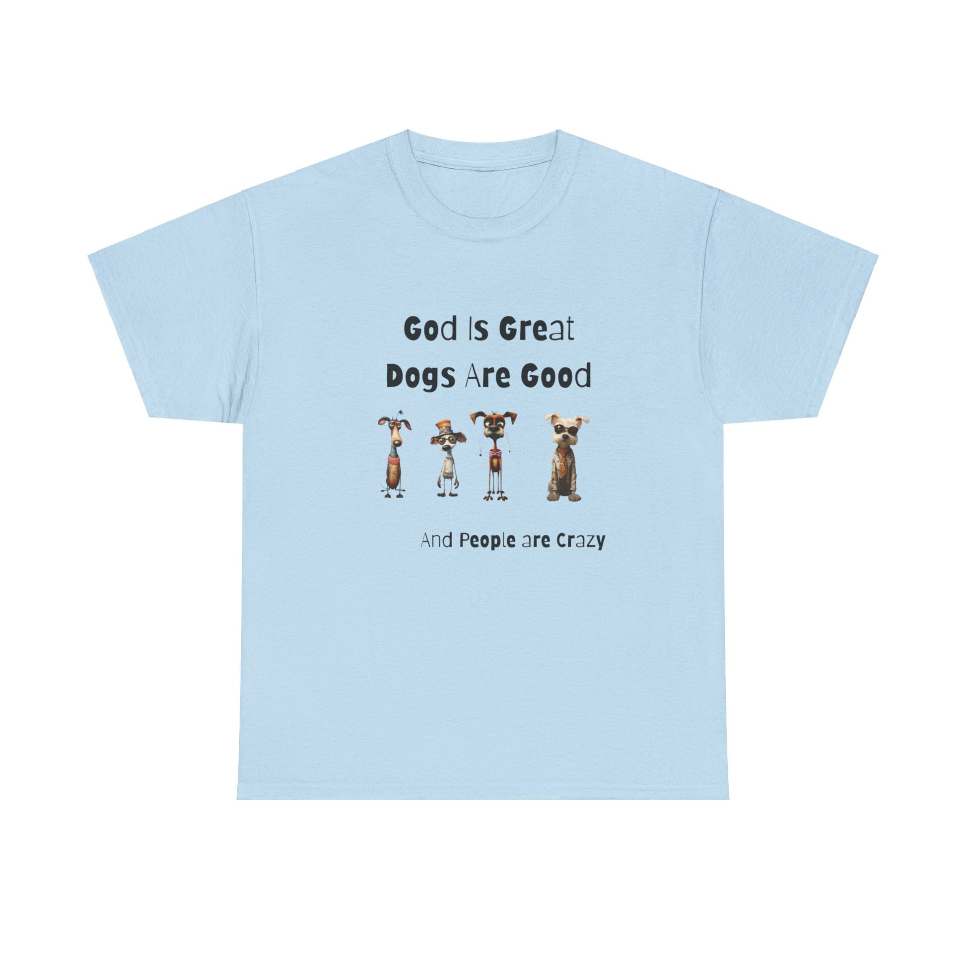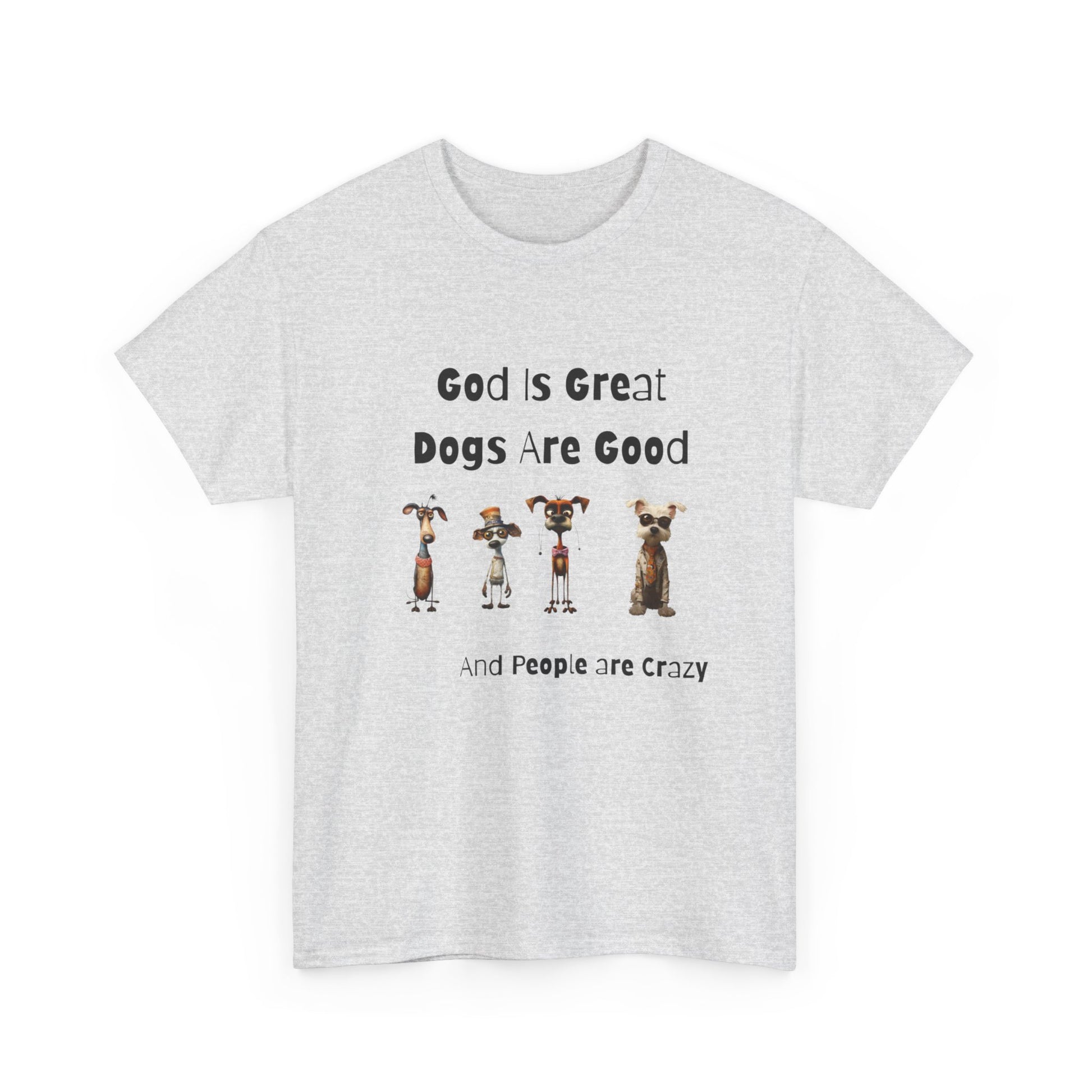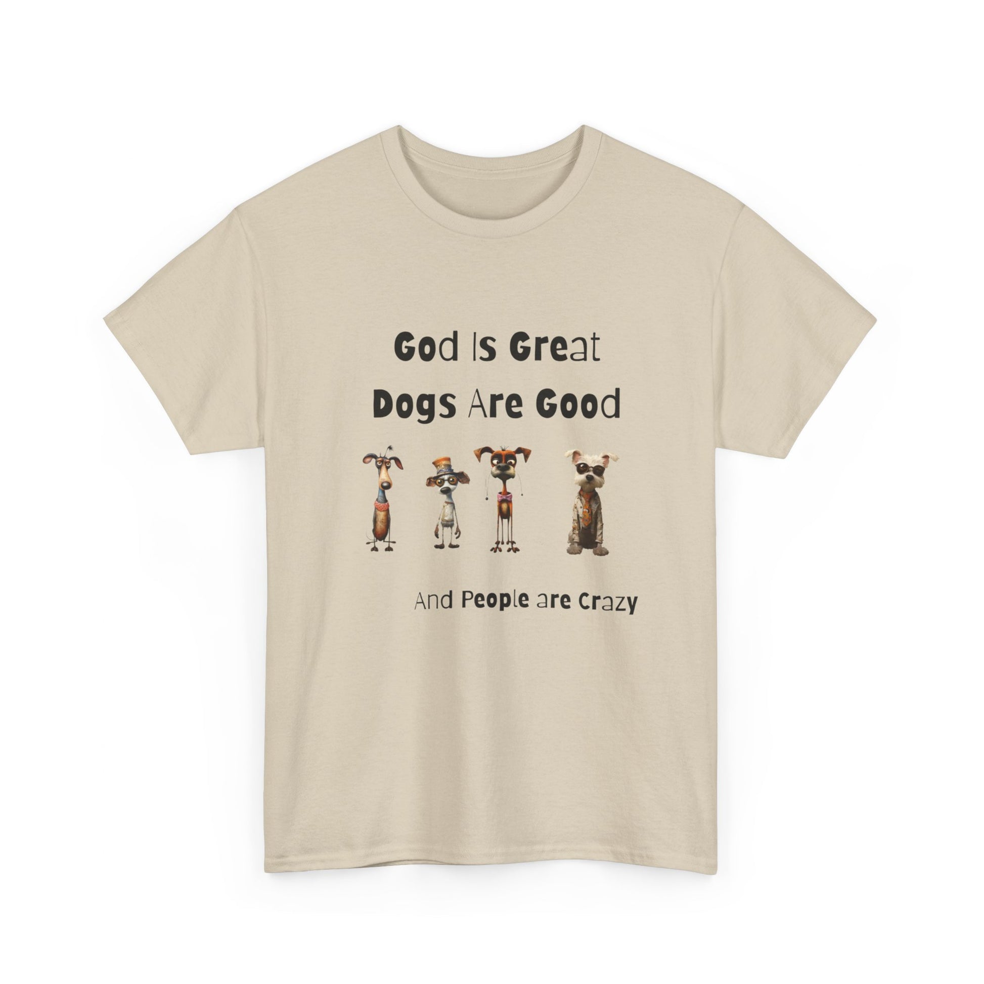God is Great, Dogs are Good and People are Crazy - Funny Cartoon Style T-shirt for Dog Lovers - Great Gift Idea