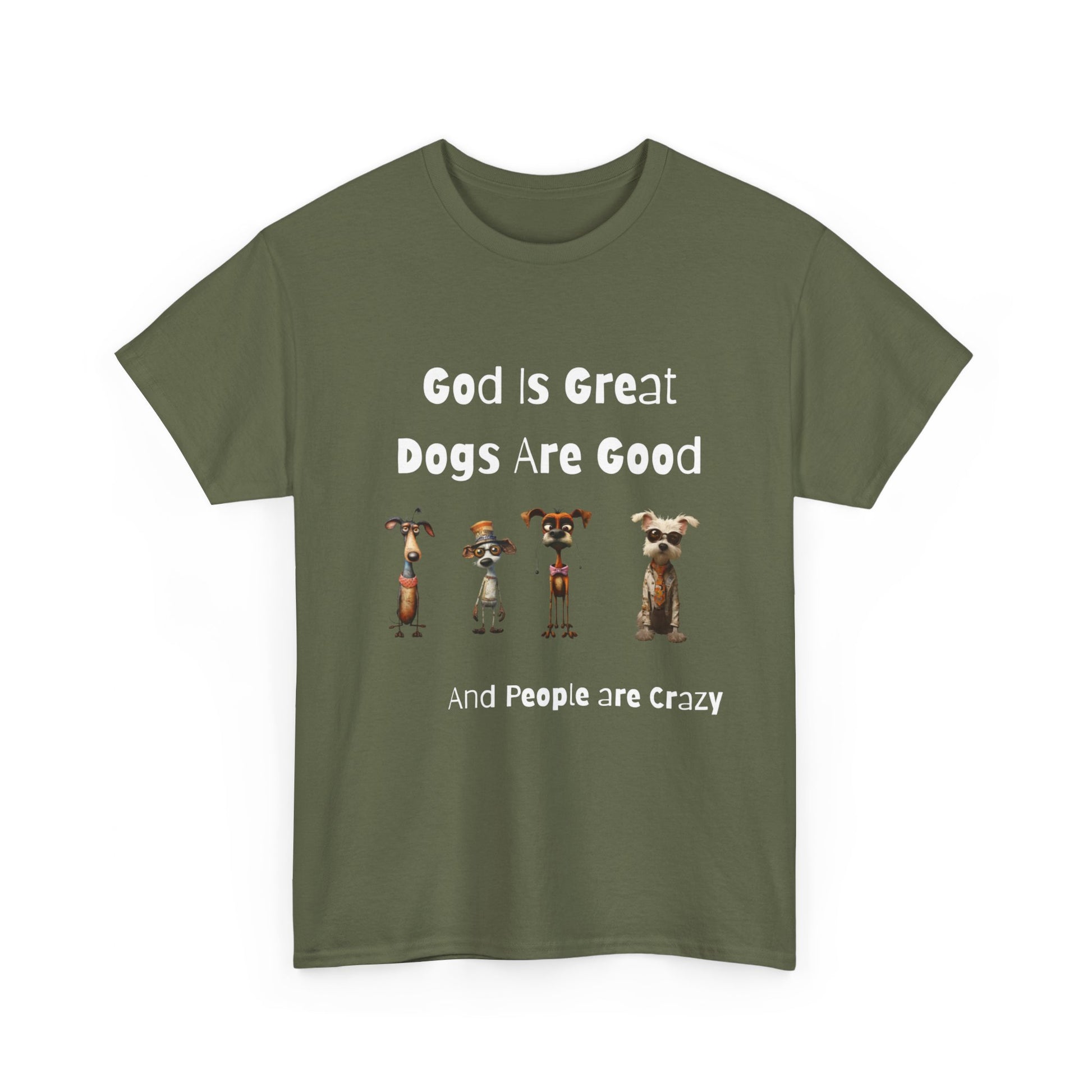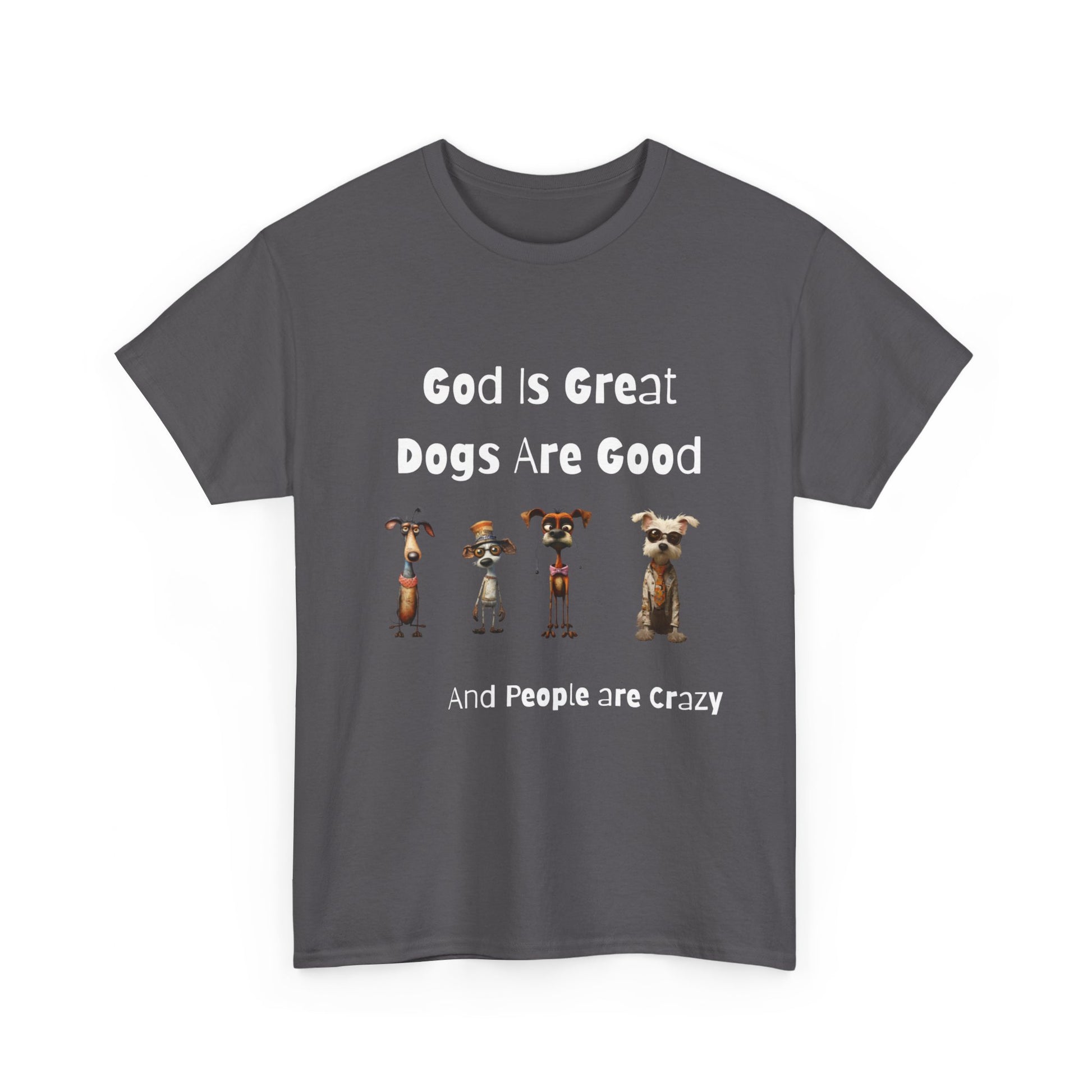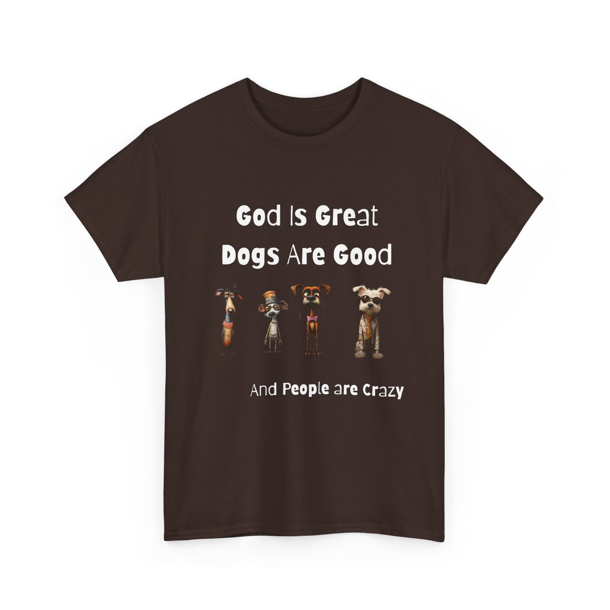 Funny T-Shirt for Dog Lovers - God is Great, Dogs are Good and People are Crazy - Conversation Starter Shirt