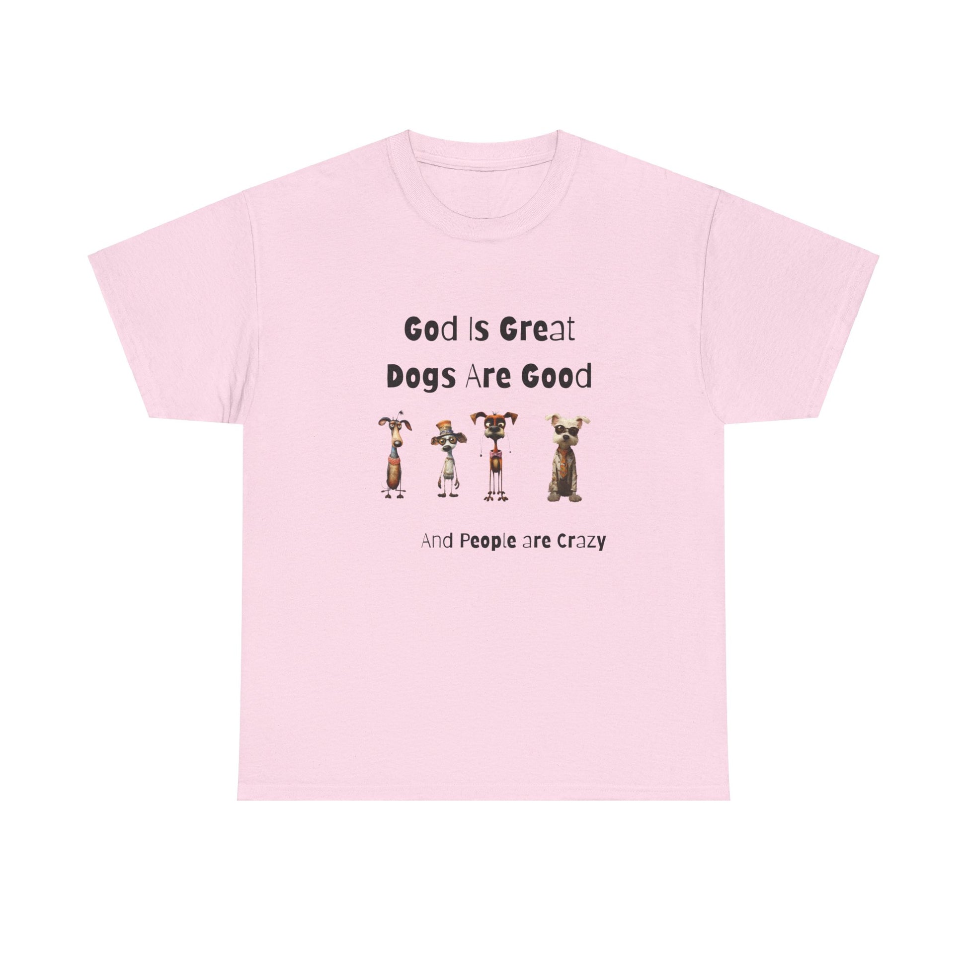 God is Great, Dogs are Good and People are Crazy - Funny Cartoon Style T-shirt for Dog Lovers - Great Gift Idea